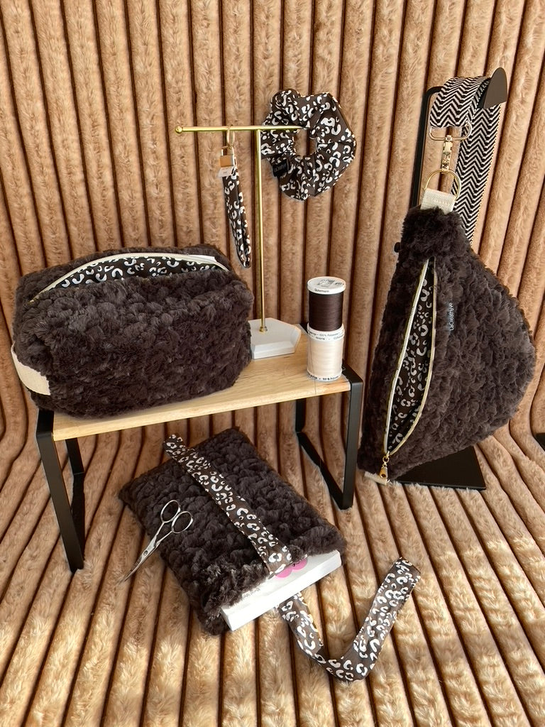 Le tissu fausse fourrure marron foncĂ© ultra doux enveloppe chaque piĂšce dâune sensation cocooning intense. Une teinte profonde, chaleureuse, rassurante, comme un refuge en accessoire.