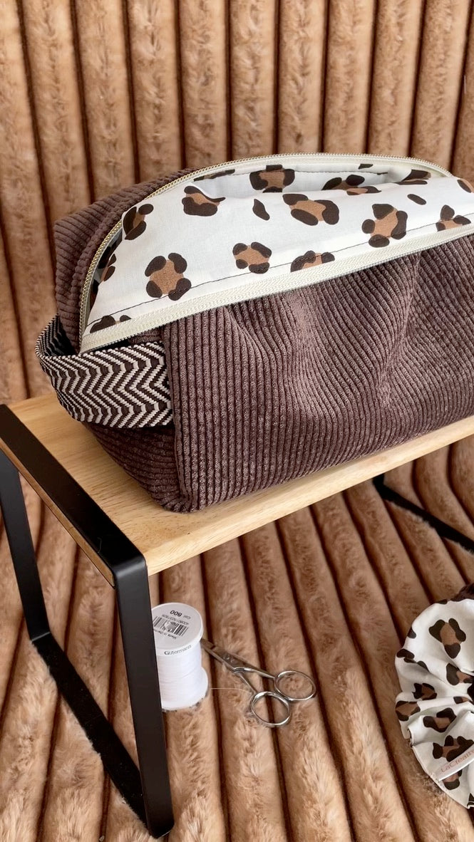 🤎🐆 Velours Safari - Accessoires en velours côtelé marron & doublure léopard