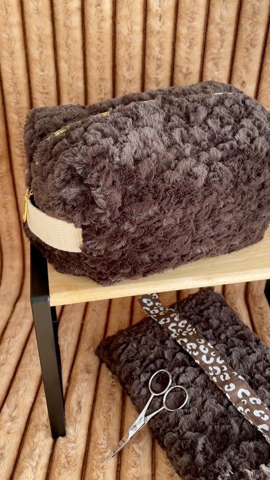 🍫🐆 Fauve Intense - Accessoires en bouclette chocolat & doublure léopard